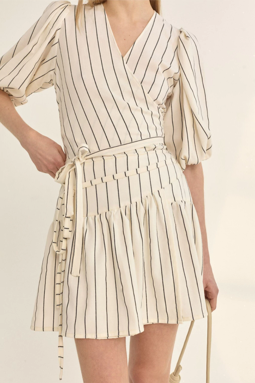 La falda Margot es una falda cruzada con volado y parte superior ceñida al cuerpo, con dos lazos en los laterales para armar un moño en el frente. Posee un cierre en el centro de la espalda como acceso. Su textil base es un lino de rayón, lo cual la hace super liviana para el verano.