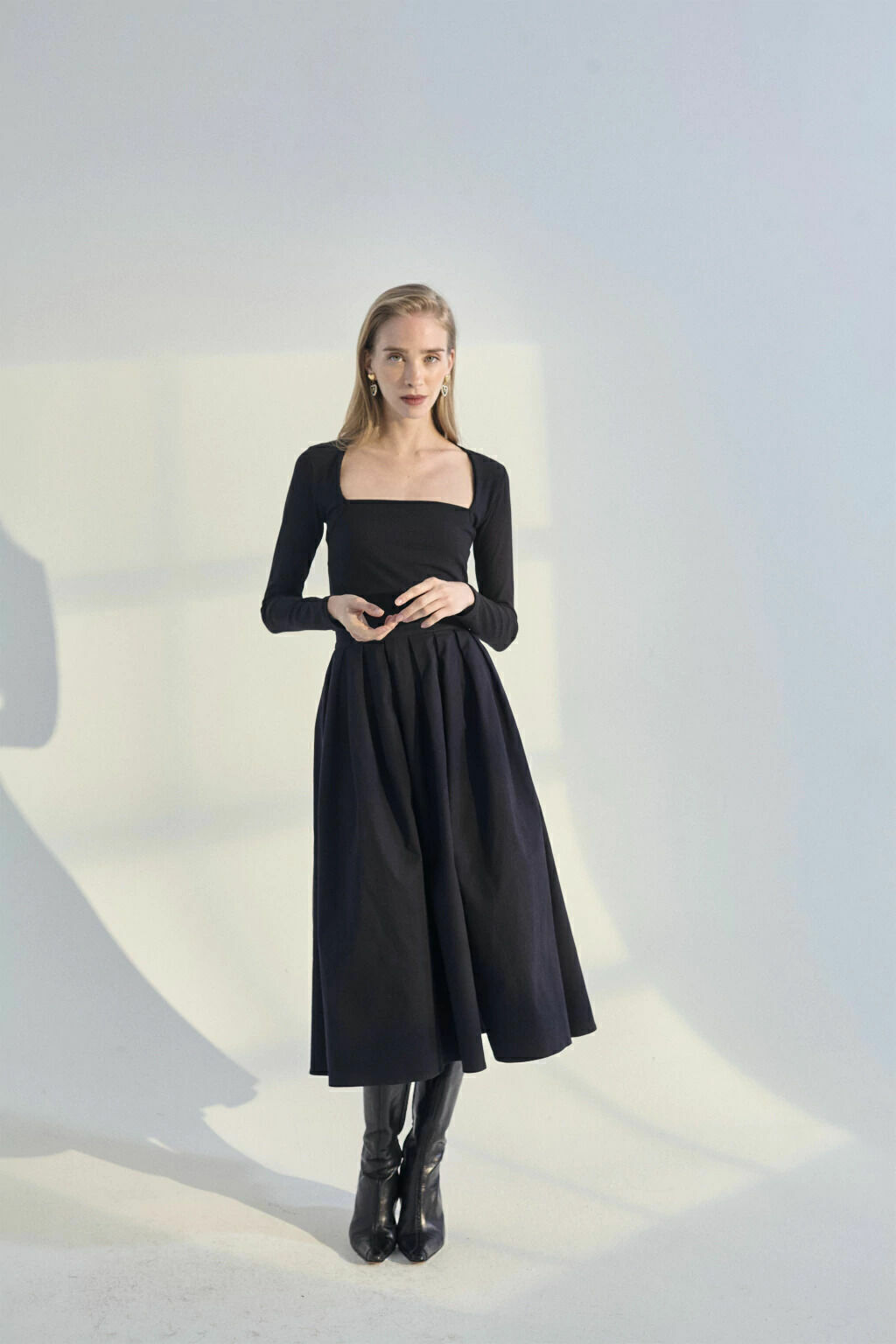 La falda Olinda es uno de nuestros clasicos reversionados. Es una falda de tablas larga, evasé pero a la que le agregamos un tajo en la pierna delantero, haciendola mas fresca y mas sexy.