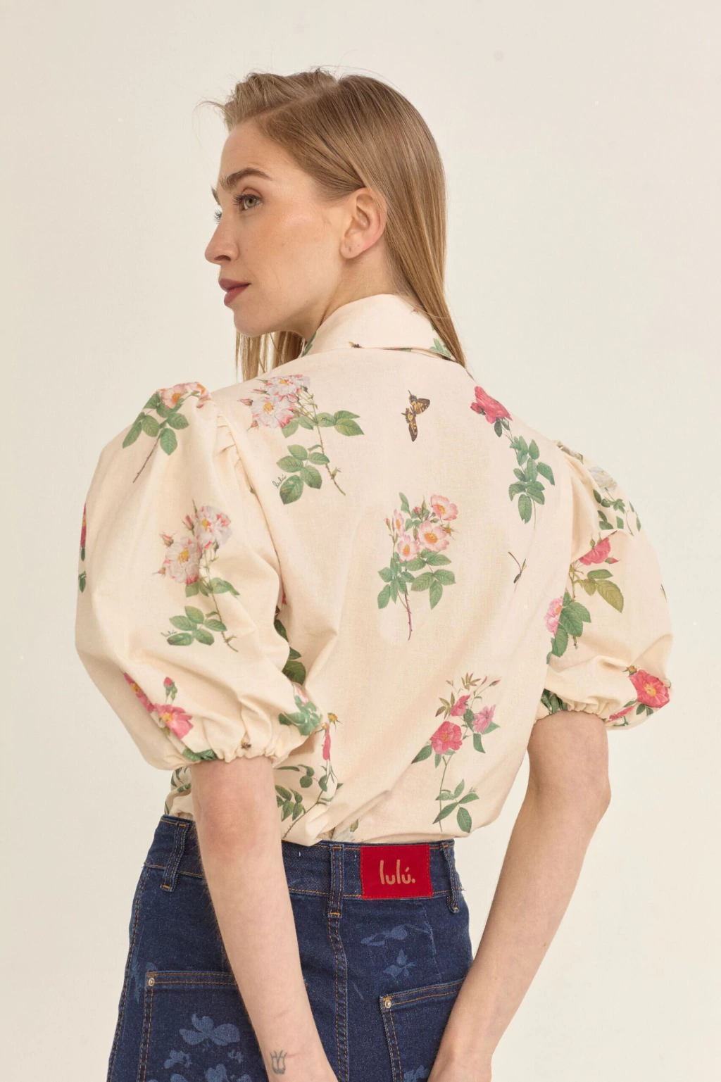 La camisa Rosé está realizada con una estampa exclusiva de la marca. Tiene mangas fruncidas en puño y hombro, otorgándole un volumen muy romántico.