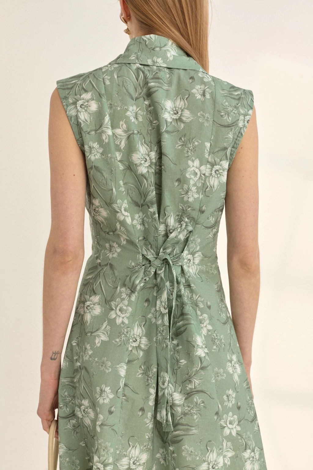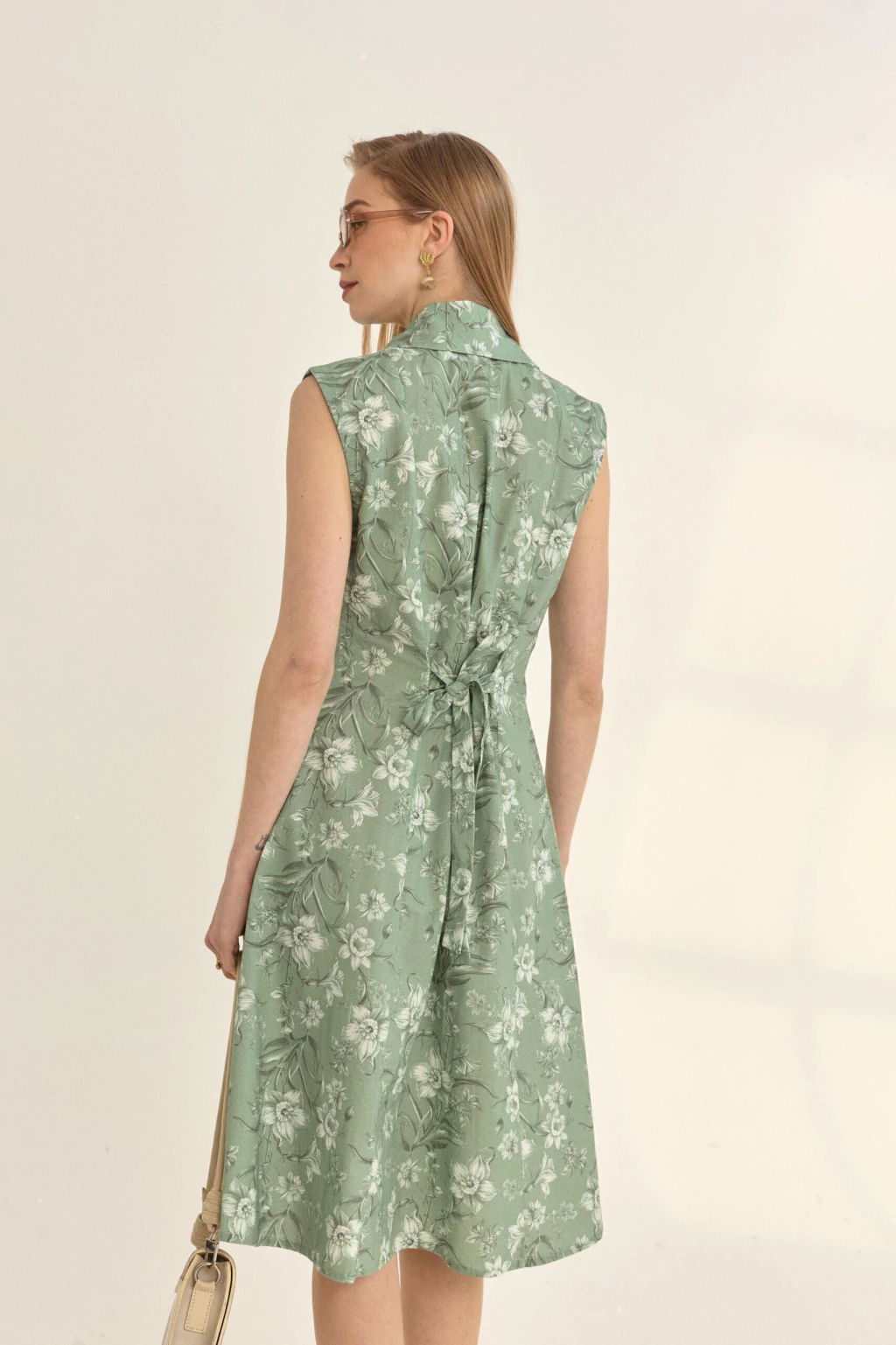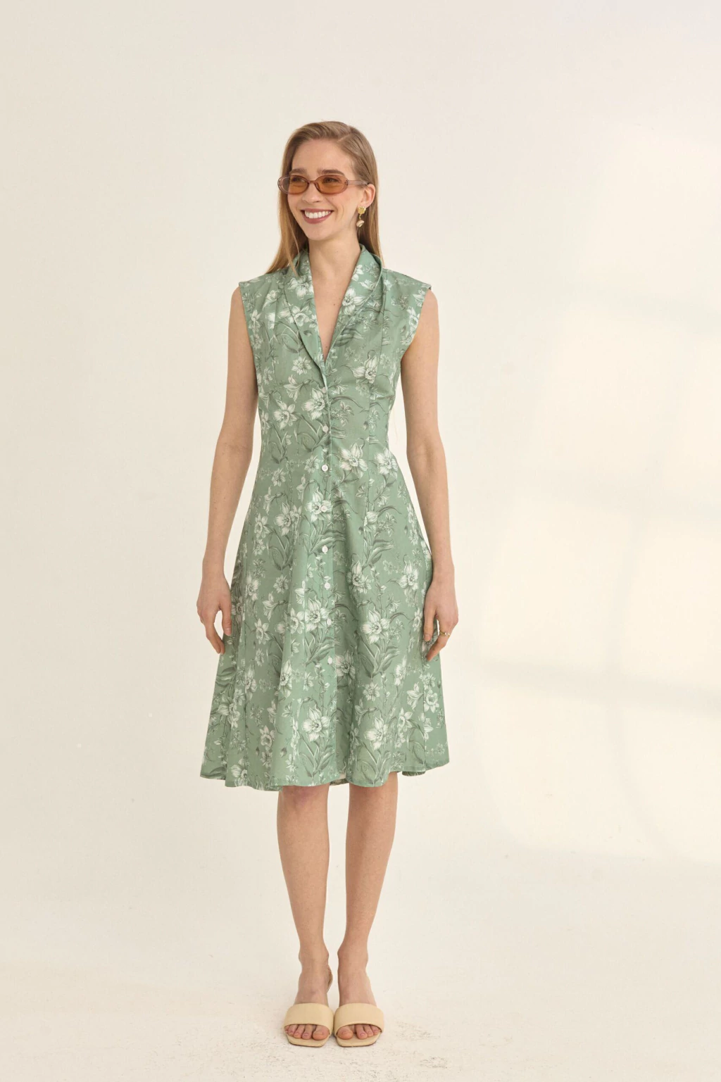 El vestido Fleur de Lis posee una estampa por metro exclusiva de Lulú, inspirada en la típica flor de lis francesa. Es un modelo largo camisero, con cartera con botones como acceso en el frente y un cuello tipo solapa redondeado. Sin mangas, lo cual lo hace un modelo super fresco. Su textil base es lino con mezcla de algodón, lo cual hace que sea super liviano y fresco para el verano. La tela no estira y el modelo es entallado, por lo cual recomendamos elegir tu talle en base al contorno de busto y cintura.