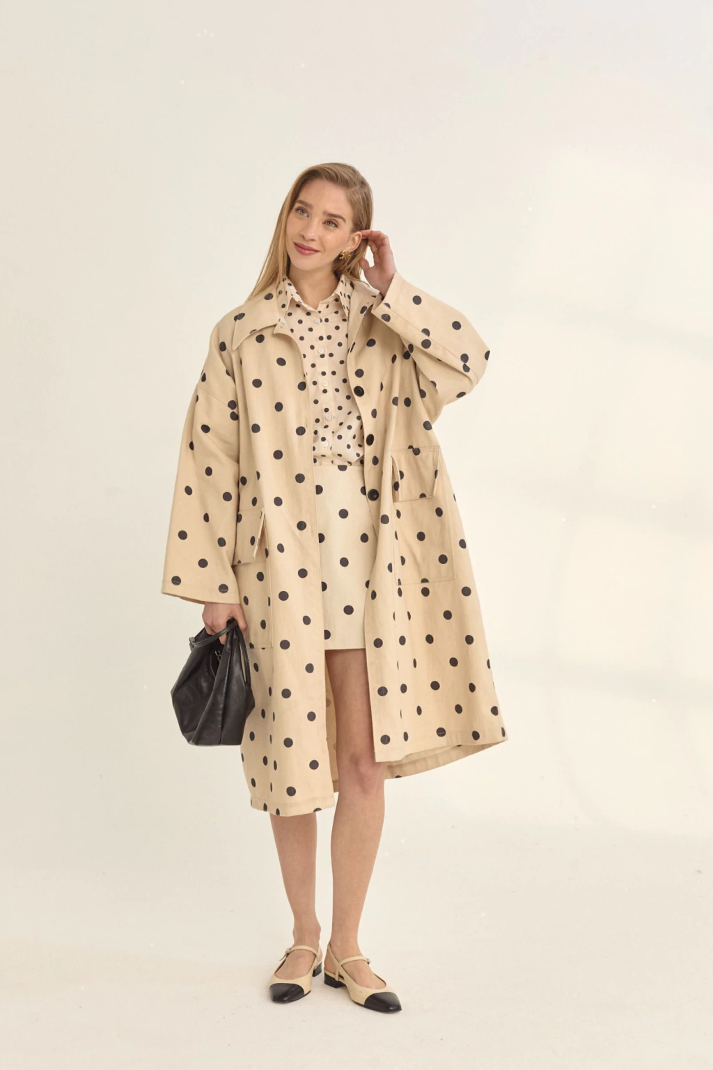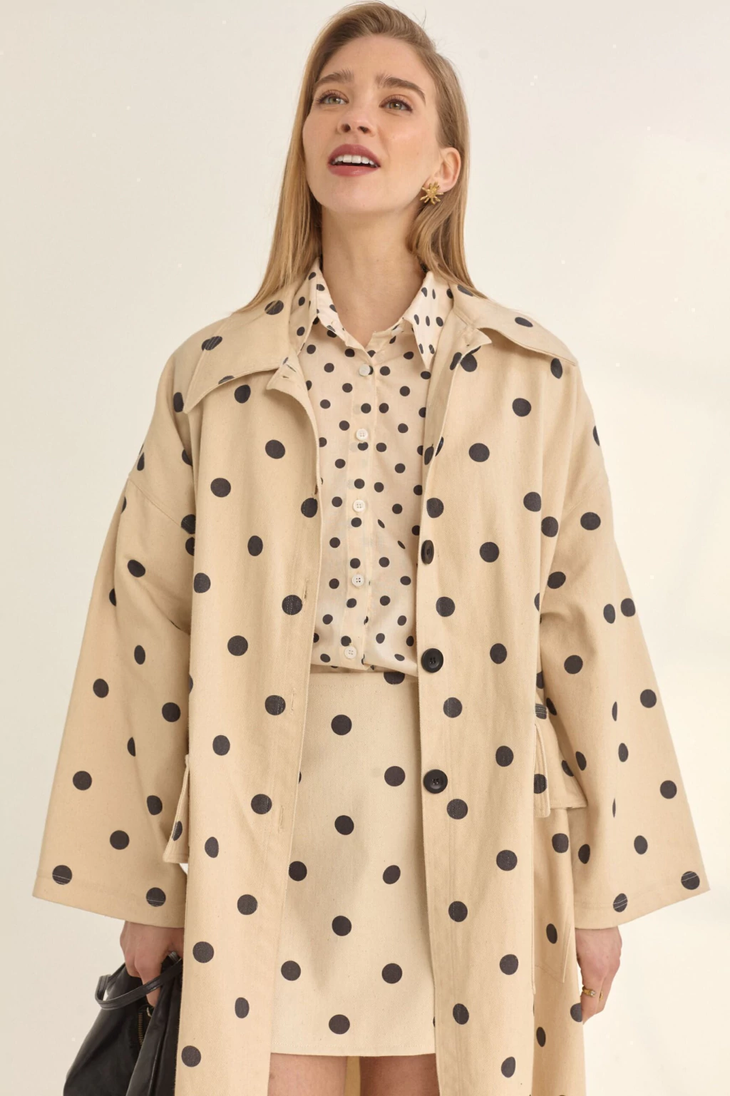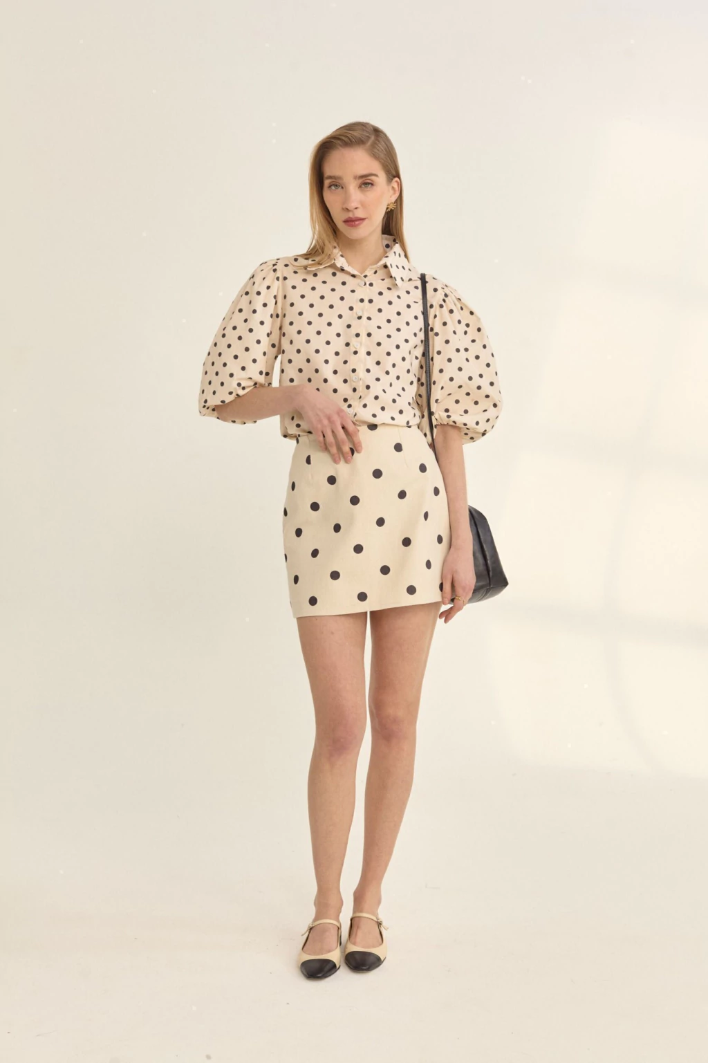 La camisa Polka esta realizada con una estampa exclusiva de la marca, nuestro clásico polka de esta colección. Tiene mangas fruncidas en puño y hombro, otorgándole un volumen muy romántico.